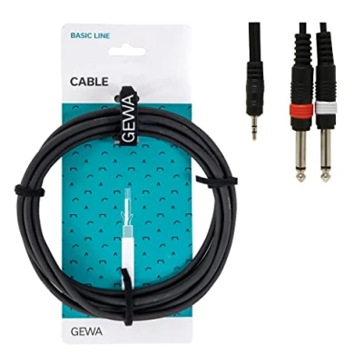 1x 3.5 mm stereo jack - 2x 6.3 mm mono jack Length: 6m Colour: black Kabel Well: With the BASIC and PRO cable series, GEWA provides the right connection solution for almost every situation. Thanks to their high flexibility and best material quality, a long and reliable use of all cables in everyday life is guaranteed. The BASIC series stands for low acquisition costs and an optimised price-performance ratio. The PRO series offers professional features such as braided shielding and high-quality plugs and connectors of the REAN brand. Scope of delivery: GEWA Y-cable Basic Line 6m, black, 1x 3.5 mm stereo jack - 2x 6.3 mm mono jack, 190130