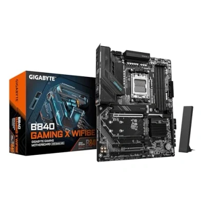 GIGABYTE B840 GAMING X WIFI6E Motherboard AMD Ryzen 9000 CPUs, 12+2+2 Phases VRM, up to 7600MHz DDR5(O.C), 2xPCIe 4.0 + 1xPCIe 3.0 M.2, Wi Fi 6E, 2.5GbE LAN, USB 3.2 Gen 2