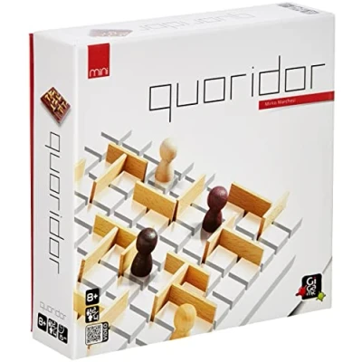 Get out of the moving maze. Your problem: your opponent puts up barriers to slow you down. Make sure it should leave you at least one free passage. But who will have the shortest path? A captivating and really funny game, suitable for everyone. Players share the barriers out between themselves and each places their piece at the centre of their starting line. In turn, everyone moves their piece from a square, or places a barrier to slow down their opponent. The counters must go around the barriers, which create a maze that needs to be escaped from very quickly, because the first that reaches the line opposite to its starting line wins the game Find the balance between moving forward and obstructing your opponent's travels to be the first to cross the board. Quoridor has become a must for thinking games, suitable for the whole family and very eye-catching Suitable for the whole family and terribly captivating, Quoridor has established itself as a classic among abstract games 4 beech wood counters, 20 beech wood barriers, varnished and engraved game board, storage bag, rules of the game (may not be in English) Artist: Mirko Marchesi, Manufacturer: GIGAMIC