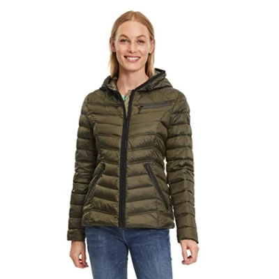 Quilted jacket With hood High-quality cotton filling Slightly fitted Length: 68 cm