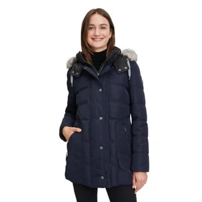 Quilted jacket With removable hood High-quality cotton filling Slightly tailored Length: 74 cm