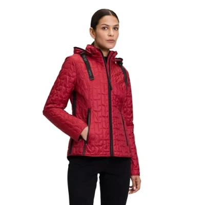 Slightly fitted women's quilted jacket from Gil Bret for a modern silhouette 26" overall length, removable hood with tunnel and stand-up collar for modern look Practical zip pockets provide stylish storage space Plain pattern makes the jacket timeless and versatile Ideal for different occasions - a fashionable companion in every season