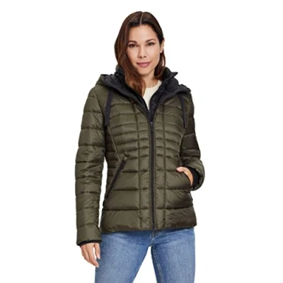 Quilted jacket With hood Slightly fitted Material mix Length: 65 cm
