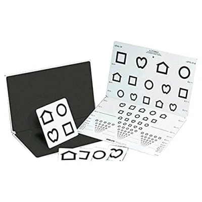 Vision Test Suitable for vision screening in schools and for evaluating children with special needs from 3 years old. The board has a hole for hanging on the wall Dimensions: 43 x 53.3 cm; folded: 43 x 26.7 cm