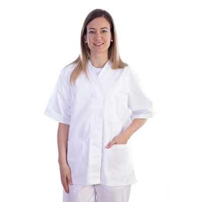 Gima Jacket, Hospital Scrub Tunic Top, Made of Cotton and Polyester, White Colour, V Neck, Short Sleeve, 5 Buttons, Unisex, Size XL, for Doctors, Vets, Nurses Medical Staff