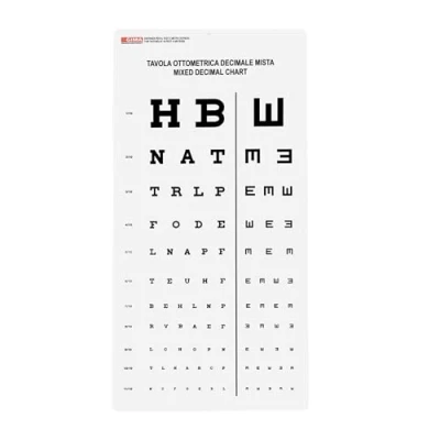Gima Mixed Decimal Otpometric Chart, Decimals and Tumbling "E" Eye Dimension 28 X 56 cm, Distance 3 m