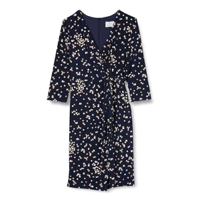 Gina Bacconi Women's Floral Jersey Wrap Dress Cocktail, Navy/Beige, 20