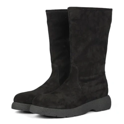 Black multiposition suede leather boots with fur They feature very cushioned footbed, plant made with natural fibers The floor is made of rubber Lining and insole are made of leather