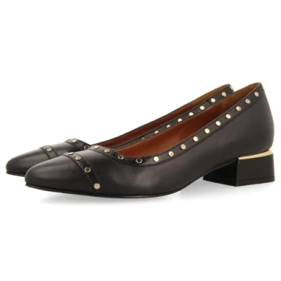 Women's Black Studded Leather Pumps Highly cushioned sustainably tanned leather footbed Lining and cut are constructed from sustainably tanned leather The spinning of the lining fabrics have Global Recycle Standard (GRS) certified guarantee seal