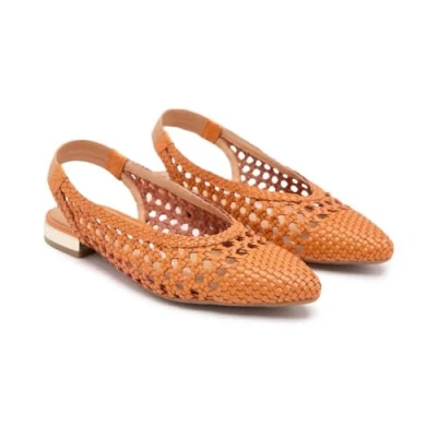 Orange pleated leather ballet flats with braid Leather lining and sole Soft latex cushioned sole Designed in Spain