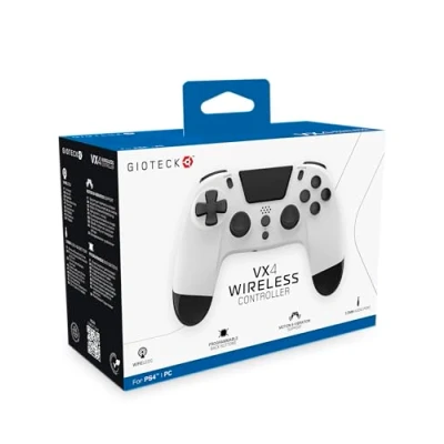 Gioteck VX4 Wireless Controller for PlayStation 4 (PS4) White with Progammable Back Buttons Bluetooth Compatible