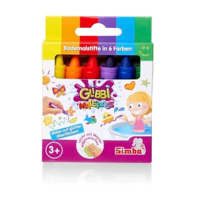 Creative bath fun - With Glibbi bath paint pens, children can paint directly in the bath or on smooth surfaces such as tiles and develop their imagination. Six bright colours - The set contains six different colours (yellow, orange, red, purple, blue and green) that make bathing even more colourful and provide plenty of room for creative ideas. Easy to wipe clean - The paints can be easily removed with water, so that the bath is clean again after painting fun. For small artists aged 3 and up - The bath colouring pens are ideal for children aged 3 and up and promote their creativity in a playful way., Manufacturer: Simba
