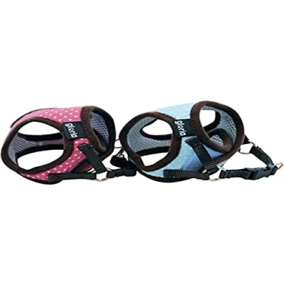 Adjustable padded harness with polka dot design Comfortable and durable Mesh lining for better ventilation They have two locks, one of velcro and a clip, for more security Small dogs