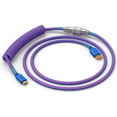 Glorious Gaming Premium Coiled Keyboard Cable Gold Plated USB A (PC) to C (Keyboard), Tangle Resistant, Double Braided Sleeving for Peak Durability, 5 Pin Aviator Mid Connection Nebula