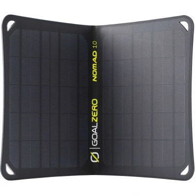 The Goal Zero Nomad 10 Watt panel gives you the solar collecting capability needed to charge your phone anywhere the sun shines. Redesigned for a more seamless solar charging experience, the Nomad 10 features a built-in Flip dock and adjustable kickstand that clicks and locks into place for added stability. Integrated USB port charges phones, power banks, and other small devices.
