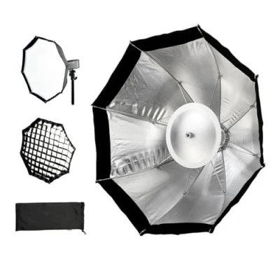 Easy to use, professional results Umbrella-shaped softbox produces soft and even lighting Works as a honeycomb attachment, foldable diffuser or beauty dish Box contents: 1 x multifunctional softbox; 1 x honeycomb attachment; 1 x silver deflector; 1 x removable diffuser