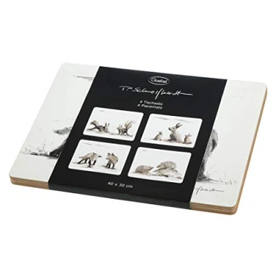 Very beautiful set of placemats from the Goebel brand from the Peter Schnellhardt collection The placemats are made of cork in white with animal motifs Lifelike drawings skilfully set the scene for the animals, a great eye-catcher on any table The Goebel Peter Schnellhardt 4-piece place mat is ideal for everyday use, whether in the kitchen or in the living room, the table mat made of high-quality cork looks good anywhere and protects the table from dirt Dimensions: 40 cm x 30 cm x 1 cm