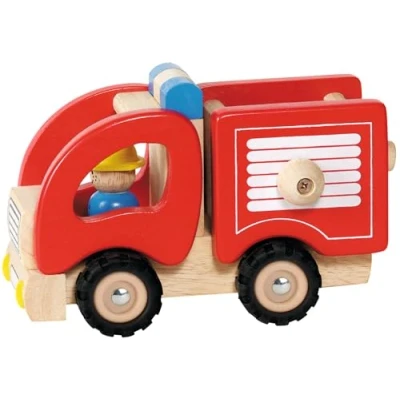 Goki 55927 Solid Wood Fire Engine Red Toy Car with Rubber Tyres & Fireman from 2 Years