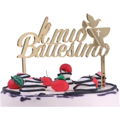 Glittering gold plex cake topper with the wording "My Baptism", ideal for placing on your christening cake. In mirrored plexiglass colour gold Size: 11 x 16 cm Ideal for decorating your cake CUSTOMER SERVICE - With our safe and high-quality products we help meet the needs of our consumers. We always listen to our customers and consider their point of view to offer better products. We are at your disposal 24/7 for any enquiries, please feel free to contact us!, Manufacturer: Graziano