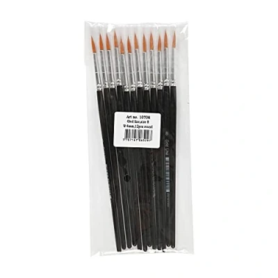 Versatile brushes for painting, gluing, and varnishing Nylon bristles and wooden handles for durability Pack of 12 brushes for all your crafting needs Round shape for precise application Length: 18.5 cm, Width: 3 mm