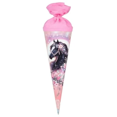 goldbuch Luna sibling bag in pink made of reinforced lacquer cardboard with a horse motif for the perfect start to school Ideal as a gift for school enrolment, for starting studies or teaching, for starting work, for retirement as well as ideal as gift wrapping, costume accessory or joke gift Safely stored contents thanks to colour-coordinated felt closure, easy opening and closing of the felt closure, smooth surface The sugar bag offers plenty of space for treats and useful school accessories such as pens, pencil cases, craft utensils, small writing pads and homework books goldbuch Luna gift bag, motif: horse, colour: pink, length: 35 cm, diameter: 11.5 cm, school cone with pink felt closure, item no. : 93141, EAN: 4009835931417, Manufacturer: Goldbuch Georg Brückner GmbH