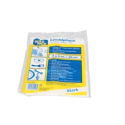 This product is the transparent light tarpaulin/cover film made of HDPE The tarpaulin is 4 x 5 m in size The film is best suited for covering walls and furniture when working indoors The cover film made of HDPE is extremely tear-resistant This tarpaulin is very durable and protects against dust, paint, dirt and moisture