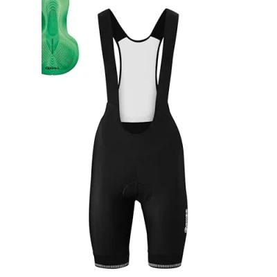 Modern cycling shorts with carrier system and mesh insert in the back, high movement elasticity and revolutionary seat padding technology for demanding bike adventures Sitivo cycling shorts concept: cycling shorts available with different seat pads with different soft foam and reinforcement of padding in different places Sitivo Green for compact sitting position: even distribution of padding, medium foam, Poron elements for reinforced cushioning of the buttocks bones and pubic bone Anti-slip silicone leg rubber for more comfort during trips on the bike, use: touring, mountain bike, commuter and road bike Box contents: 1 x Gonso Sitivo Bib W, women's bib shorts, with Sitivo Green Comfort seat padding, fit: tight fit, colour: black, size: 40