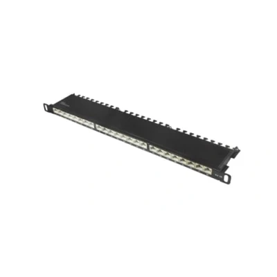 Patch panel / patch panel / distribution panel - 19 inch / 19 inch version with 24 ports Cat. 6A / Category 6A - Suitable for 10 Gigabit/s Ethernet and for transmission frequencies up to 500 MHz Shielded (STP) + complete shielding of RJ45 sockets and LSA strips + central earth connection Cable installation via LSA strips (colour marking according to TIA 568 A/B) - for solid and stranded cables (22-26 AWG) Colour: Jet Black (RAL9005) / Dimensions (WxDxH): 482.6 x 100 x 22 mm