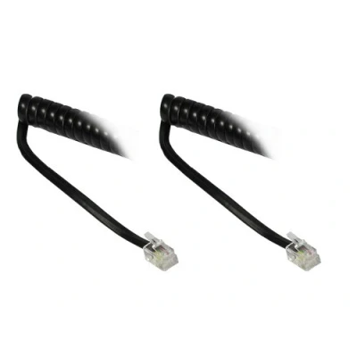 Telephone handset cable (coiled cable) - optimal connection for handsets and telephone Connectors: RJ10 male (4P4C) on both sides Coiled cable Inner conductor: CCA Black - 2m