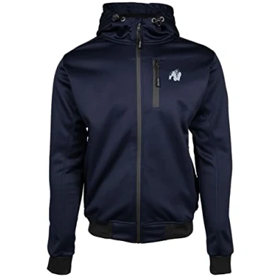 Windproof softshell jacket for your leisure time Gorilla Wear, the brand of bodybuilding, fitness, lifestyle and martial arts Colour: Blue Care instructions: machine wash at 30°C, normal cycle, do not bleach, do not tumble dry, do not iron at hot (110°C), steam iron, do not dry clean Fit: slim fit (tight fit)