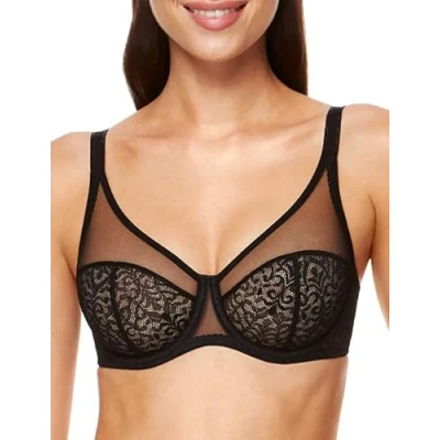 Underwired bra with soft, semi-transparent cups made of oriental lace and tulle supports the bust perfectly Ideal for everyday use Adjustable, non-removable shoulder straps The width of the straps increases with increasing cups High-quality lingerie, made in the EU