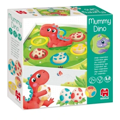 A first board game for toddlers from 2 years old with a dinosaur theme; Kids must help Mama Dino find their 9 eggs and bring them back to the nest in time PROMOTE HELP AND COOPERATIVE BEHAVIOR: This game encourages teamwork and thus develops social skills, combines happiness and strategy and provides an educational and fun experience on the theme of dinosaurs With its wooden eggs and bright colors, the game attracts children's attention and offers little ones a pleasant sensory experience PRACTICAL: A box that doubles as a game table and allows for quick assembly and easy storage; plays directly in it, which is optimal to prevent parts from being lost Together on adventure for 1 to 4 players, Manufacturer: Jumbo Spiele GmbH