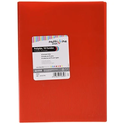 Grafoplás 1431751. Folder of 10 Transparent Pockets, Foolscap Size, Red, Multiline Polyplás