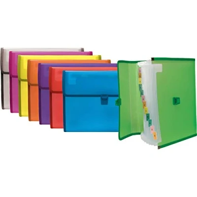 Sorting folder with 13 interior departments. Made from semi-rigid translucent polypropylene With tabs and coloured tags Fastener with plastic clasp. Blue, Folio size