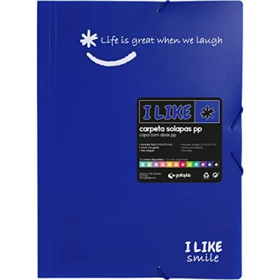 Three flaps folders made of opaque semi-rigid polypropylene. Folder size folio, measures: 243x329 mm. Folders with elastic band closure Semi-rigid blue covers Perfect for carrying all kinds of school documents and notes, as well as office or home papers.