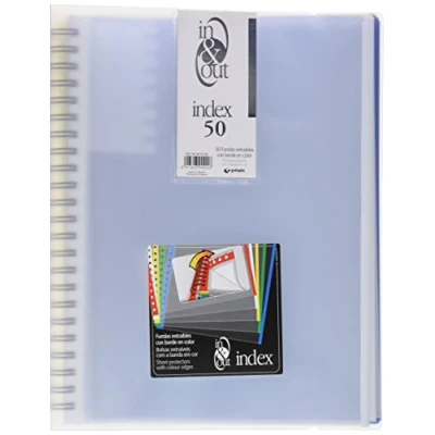 50 x transparent pockets with orange leather finish and edge in 5 colours: red, yellow, green, blue, white Translucent rigid polypropylene covers Spine protects the binding spiral