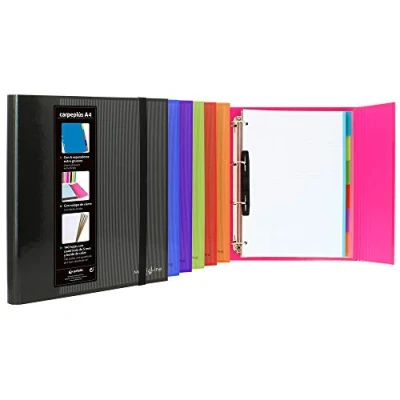 A4 4 x 25 mm mixed rings (D-shaped) Includes refill of 100 micro perforated sheets with 5mm grid and 90g colour edges Comfortable extra strong vertical rubber closure, 15mm wide Curved spine, more ergonomic, perfect for taking your notes anywhere Covers lined with FSC certified orange paper