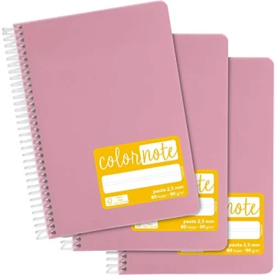 Grafoplás 98537353. Pack of 3 A5 School Notebooks, 2.5 mm, Polypropylene Covers, Pink, Colour Note Series