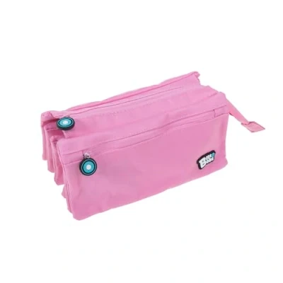 Dimensions of the carrier: 23x12 cm Large capacity; school case with four compartments and two exterior pockets Rectangular shape; pink; made of polyester Back strap for hanging backpack case or desk, including ID and card with weekly schedule Three front, rear and top openings with round rubber outer handles; four inner compartments with zip closure