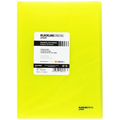 Folder with transparent sleeves welded on the spine This document folder contains 50 sleeves made of extra high quality polypropylene Folio format. Dimensions: 21.5 x 30.5 cm. This file folder has its yellow covers Perfect for organising all types of office, school or household documents. Made in Spain