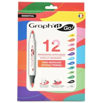 Its water-based ink is covering and dries quickly. The GRAPH'IT GO! is dual tip: a soft brush tip for details and a tapered tip for flat With its 60 colour chart, it offers a wide selection of intense colours. Ideal for any creative activity on various media or for mystery colouring. Each color is associated with a number to color to discover a hidden image. The EXOTIC MANDALA theme invites you to reveal animals, flowers and landscapes with very saturated colors Immerse yourself in a journey of relaxation and discovery with this unique colouring kit! In this set, discover 8 large format mystery coloring cards as well as 12 acrylic markers without priming GRAPH'IT GO! Let your imagination travel and reveal unique works, one stroke of color at a time!