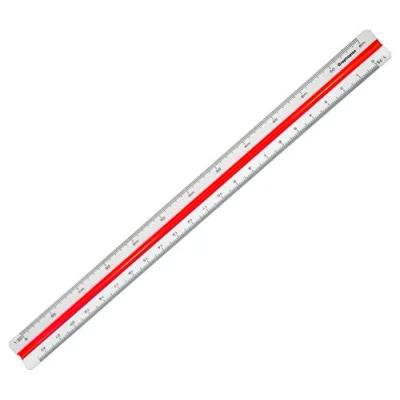 Triangular reduction scale ruler. Precise graduations. Length: 30cm. 2 scales: 1/20 to 1/125th.