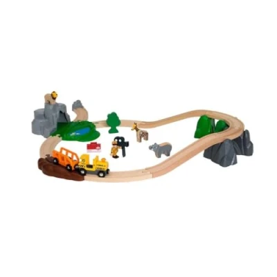 BRIO SAFARI TRAIN SET - The BRIO World Safari Adventure wooden train set lets you safely explore the savannah and admire the animals in their natural setting. Chug through the landscape in a safari steam train where you’ll meet a lion, giraffe and elephant. With tons of accessories, tracks, trains and sets to collect this wooden train set is a great place to start your own BRIO World. HIGH QUALITY COMPONENTS - The track layout measures 69.8 x 54.6 x 9cm and includes 1x Figure, 1x Camera, 1x Case, 1x Giraffe, 1x Elephant, 1x Lion, 1x Train, 1x Wagon, 1x Tree, 10x Pieces of Track, 1x Track Stop, 1x Cave, 1x Watering Hole, 4x Rock Supports. BRIO RAILWAY COLLECTION - BRIO Trains, Engines, Wagons, Carriages, and Vehicles feature the classic BRIO magnetic couplings for easily hook up! All train sets, rails, accessories and destinations feature the classic wooden train track allowing for easy connection to each other and expand your own BRIO World., Manufacturer: BRIO AB
