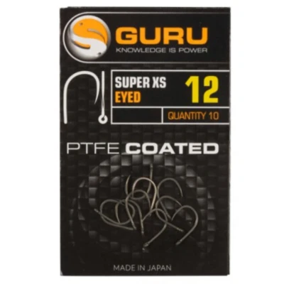 Guru Super XS Eyed - Available in different hook sizes and hook types! - Number of pieces: 10 - Very Sharp - Durable hook - With eye - Good and fast hooking - Perfect for large bait - PFTE coated - Ideal for coarse fishing! The Super XS Eyed is a very sharp hook from Guru. This durable hook is equipped with a PFTE coating, so the hook will stay sharp longer and last longer. This hook guarantees a good and fast hooking. Very suitable for the use of large bait. The ideal hook for coarse fishing!