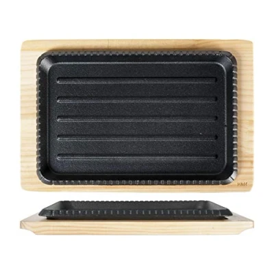 H&H 729959 Cast Iron Grill, Wood Base, 18x27 cm