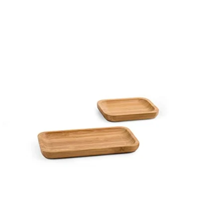 Confezione 2 piatti/vassoi in bambù forma rettangolare cm 9x12 e cm 11x20.