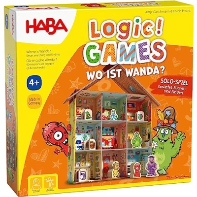 Entry into the world of logic games: Logic! GAMES - Where's Wanda? from HABA Hidden object game from 4 years with 5 monster wooden figures, 4 favourite things and a spiral pad with tasks and solutions The puzzle box turns into a 3D game for children and a hidden monster house, width 21.9 cm in no time at all In the solo game, it is important to solve 60 tasks with increasing difficulty level Age-appropriate exercise for creative thinking and concentration with huge puzzle fun, Manufacturer: HABA
