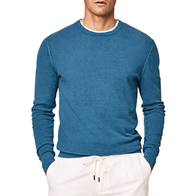 Hackett London Men's GMD Textured Crew Pullover Sweater, Blue, S