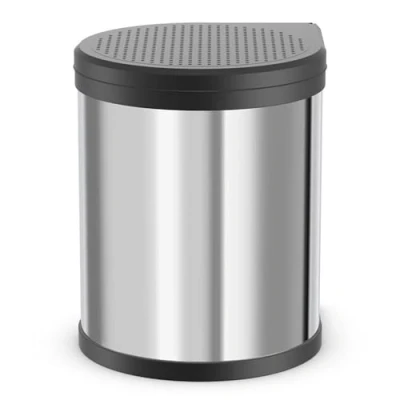 Innovative waste bin system: stainless steel garbage can with automatic lid lifting system for hands-free disposal, triggered by opening the cabinet door Sanitary waste disposal: equipped with a removable plastic inner bin and handle for easy waste removal, hides the bin liner for a neat appearance Easy installation a compact garbage can designed for 15.75 wide base units simple to mount on either side with a sleek black lid Lid lift system for easy garbage disposal in a compact design