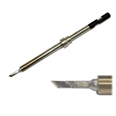 T30 Series Soldering Iron Tip, ‘K’ Knife shape for the Hakko FM-2032 Micro Soldering Iron 1.4mm/45° x 8.5mm This type has a shape like a knife and is capable of soldering by applying the tip in 3 ways: line, face and point. It is used for soldering at narrow pitches, correction of bridging and drag soldering. Micro Soldering Iron Tip for soldering in tight spaces Used with the FM-2032 Micro Soldering Iron which can in turn be used with the Hakko FM-203, FM-206 and FX-951 Soldering Stations